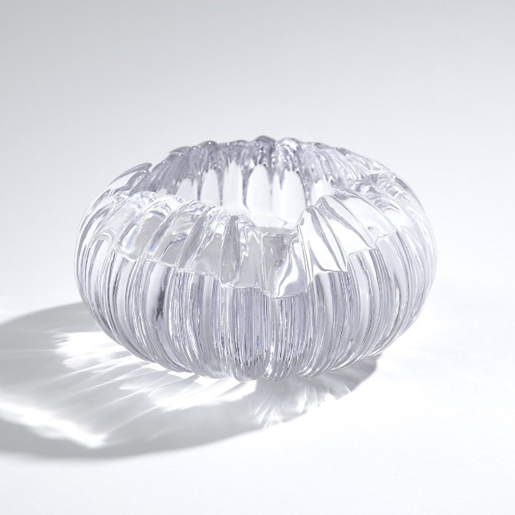 Inspired by the flowing form of a sea anemone, this crystal glass bowl features organic ribbed detailing that dances with light. Its refined proportions make it ideal for displaying on desks, tables, or bar surfaces. Perfect for holding candy, jewelry, or cosmetics while adding sculptural elegance to any room.